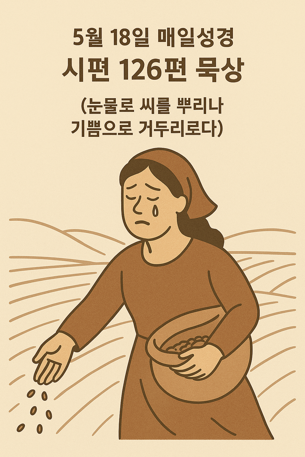 시인은 다시 한번 회복을 간구합니다. ‘남방 시내들’은 갑작스럽고도 넘치는 회복의 이미지입니다. 그리고 눈물로 뿌린 씨앗은 결국 기쁨의 수확이 된다고 고백합니다. 고난 중에 드린 기도와 수고는 하나님 앞에서 절대 헛되지 않습니다. 울며 나아간 순종은 반드시 찬양으로 돌아오게 될 것입니다.