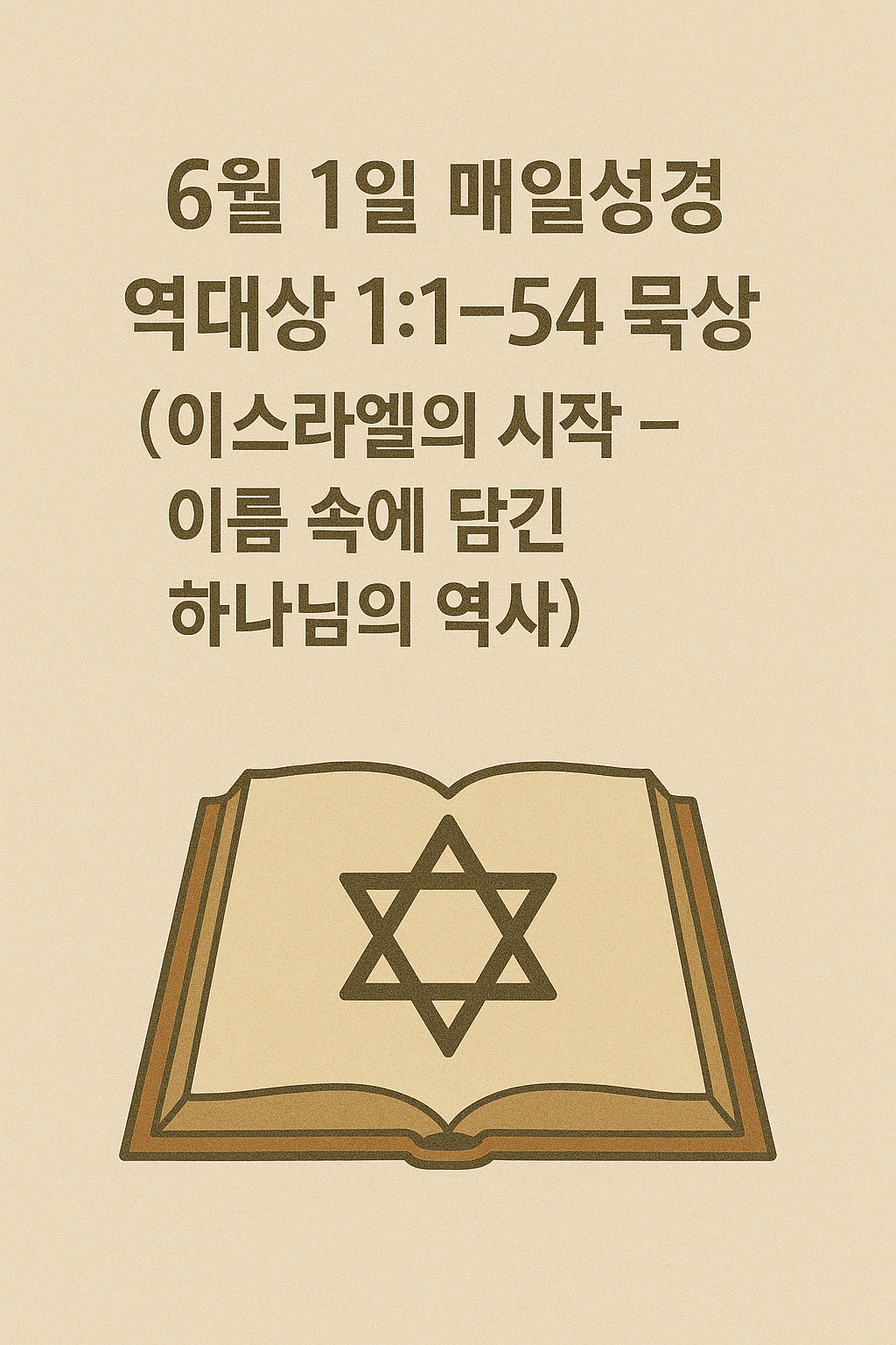 2025년 6월 1일, 역대상 1:1–54은 이스라엘 역사의 서론이자, 하나님의 구속사가 어떻게 시작되었는지를 보여주는 중요한 족보입니다. 아담부터 아브라함, 에서, 그리고 이스라엘로 이어지는 이 계보는 단순한 이름 목록이 아니라, 하나님이 일하신 발자취입니다.