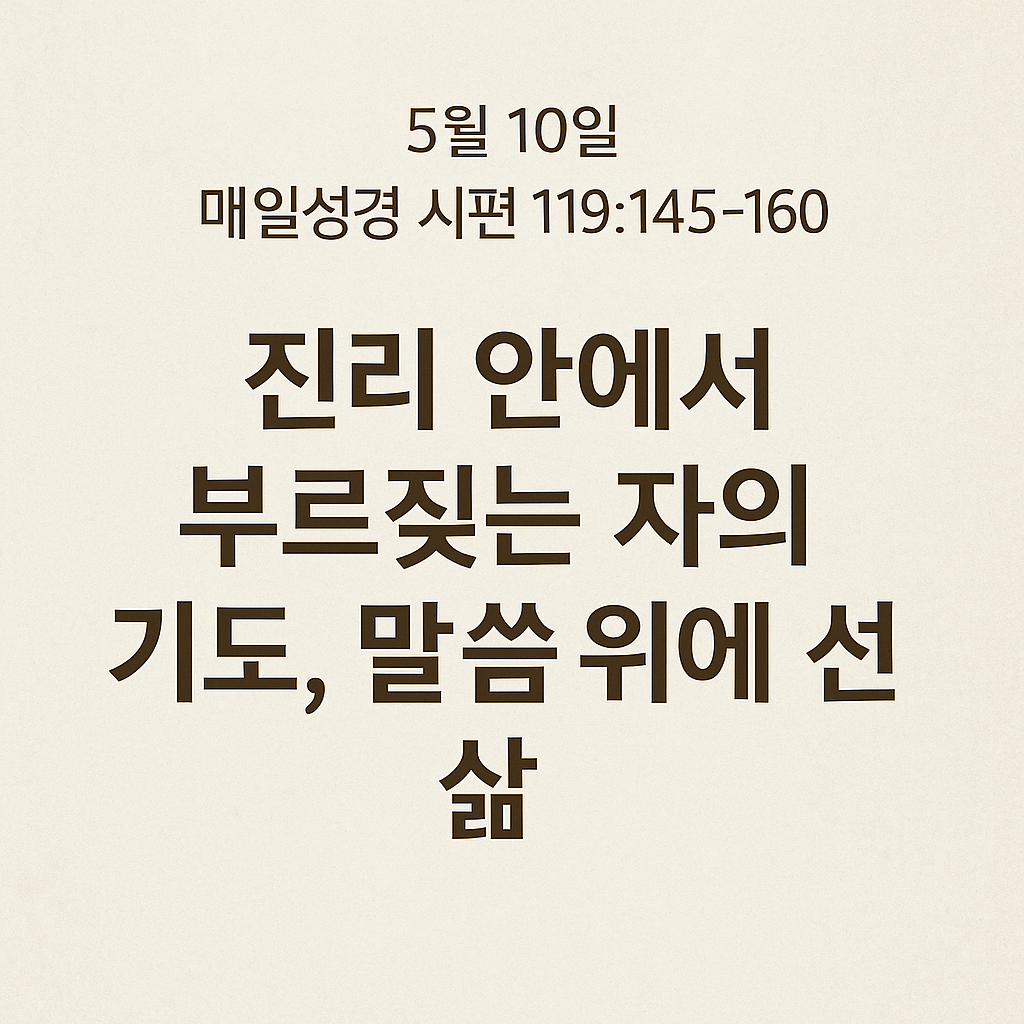 5월 10일 매일성경 시편 119:145-160 묵상(진리 안에서 부르짖는 자의 기도, 말씀 위에 선 삶)